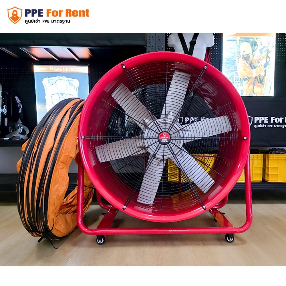 พัดลมระบายอากาศ 32 นิ้ว พร้อมท่อส่งลม 10 เมตร ยี่ห้อ POLO สำหรับงานระบายอากาศในพื้นที่อับอากาศ เช่น บ่อพัก Manhole ถังอุตสาหกรรม หรือพื้นที่ก่อสร้าง พัดลมอุตสาหกรรมให้แรงลมสูง ช่วยดูดหรือเป่าลมเพื่อระบายก๊าซและอากาศเสียออกจากพื้นที่ทำงานได้อย่างมีประสิทธิภาพ